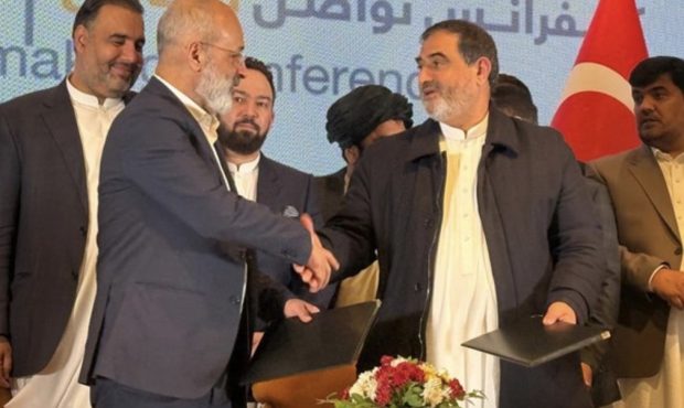 در همایش تجاری که با حضور هیاتهایی از کشورهای ترکمنستان، ازبکستان، هند و ایران در دومین روز از برگزاری نمایشگاه بینالمللی امام ابوحنیفه افغانستان برگزار شد، قدیر قیافه نایبرئیس اتاق بازرگانی، صنایع، معادن و کشاورزی ایران و کریم هاشمی رئیس اتاق تجارت و سرمایهگذاری افغانستان تفاهمنامه همکاری امضا کردند.