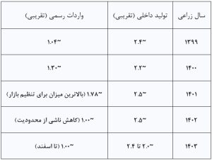 ۱. پذیرش کسری واقعی و تدوین استراتژی واردات بلندمدت: تعیین سهمیه واردات بر اساس نیاز واقعی (حداقل ۱.۲ میلیون تن) و تضمین تخصیص بهموقع و شفاف ارز. ممنوعیت فصلی باید با سازوکاری انعطافپذیر جایگزین شود.